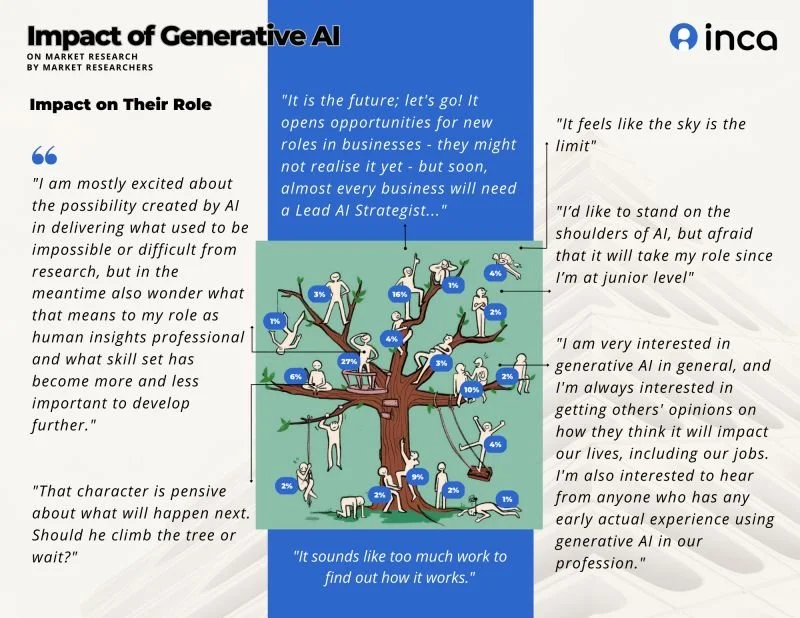 To be, or not to be, that is the question. In our case, the question is, “Should he climb the tree or wait?” as articulated by an industry peer when asked about the perceived impact of generative AI on their roles. Surely not as melancholy, but if I could walk away with one quote from our survey, that would be it (see the full quote and context in the image below) – Many people in the industry don't feel they know enough about Generative AI and may not even know where to start. That seems to be a common theme.