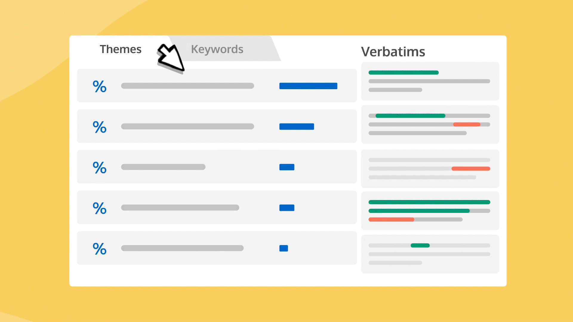Conversation data gets automatically clustered into meaningful categories in real time. No more expensive and time consuming coding!