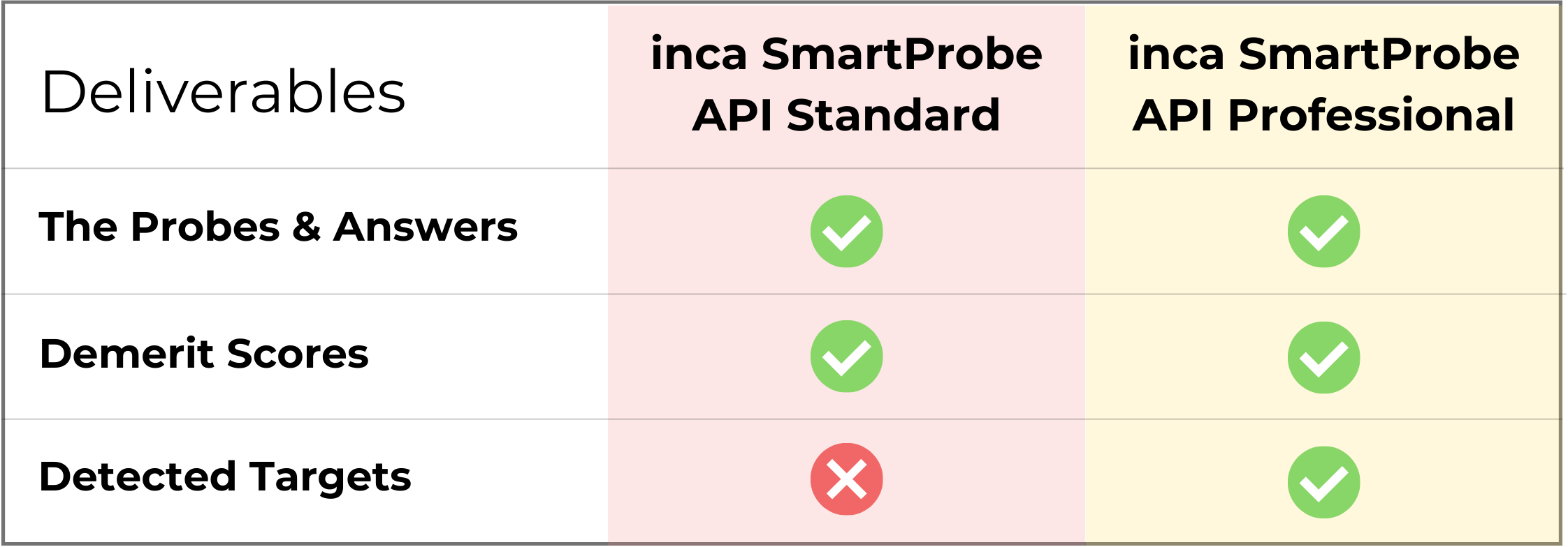 Deliverables: The inca SmartProbe API records 4 things: