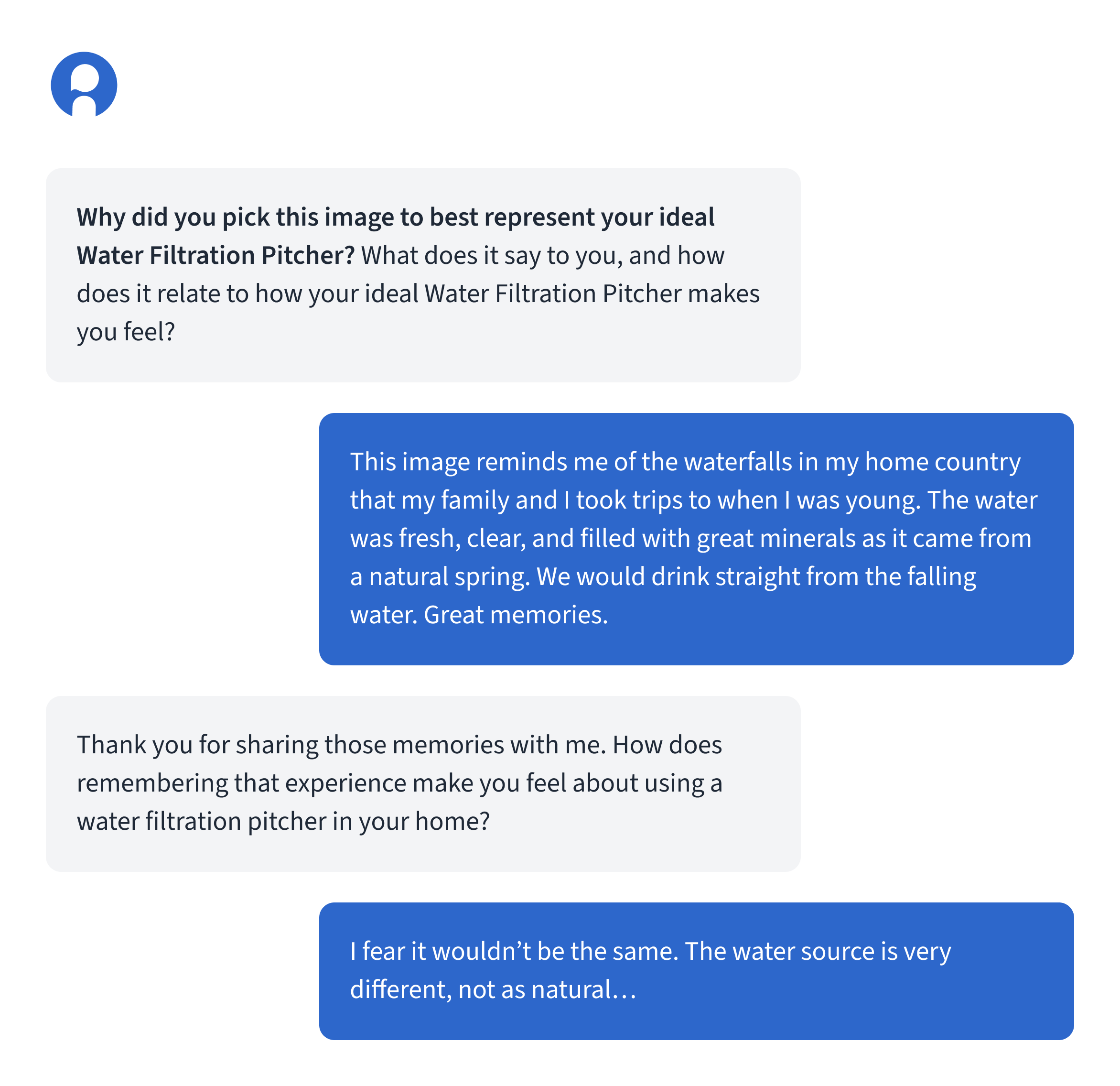 The study featured one of Nexxt Intelligence|inca’s digital projective techniques, a metaphor elicitation exercise, where participants selected images that best represented their ideal water filtration system. Once participants provided their ideas about their selected image, inca SmartProbe was a powerful conversational tool that asked follow-up questions in the moment, like a human moderator. This is an example of the platform’s ability to bring deep emotional value by incorporating higher quality into qual, and applying inca SmartProbe to capture participants’ thoughts and emotions on a much deeper level.