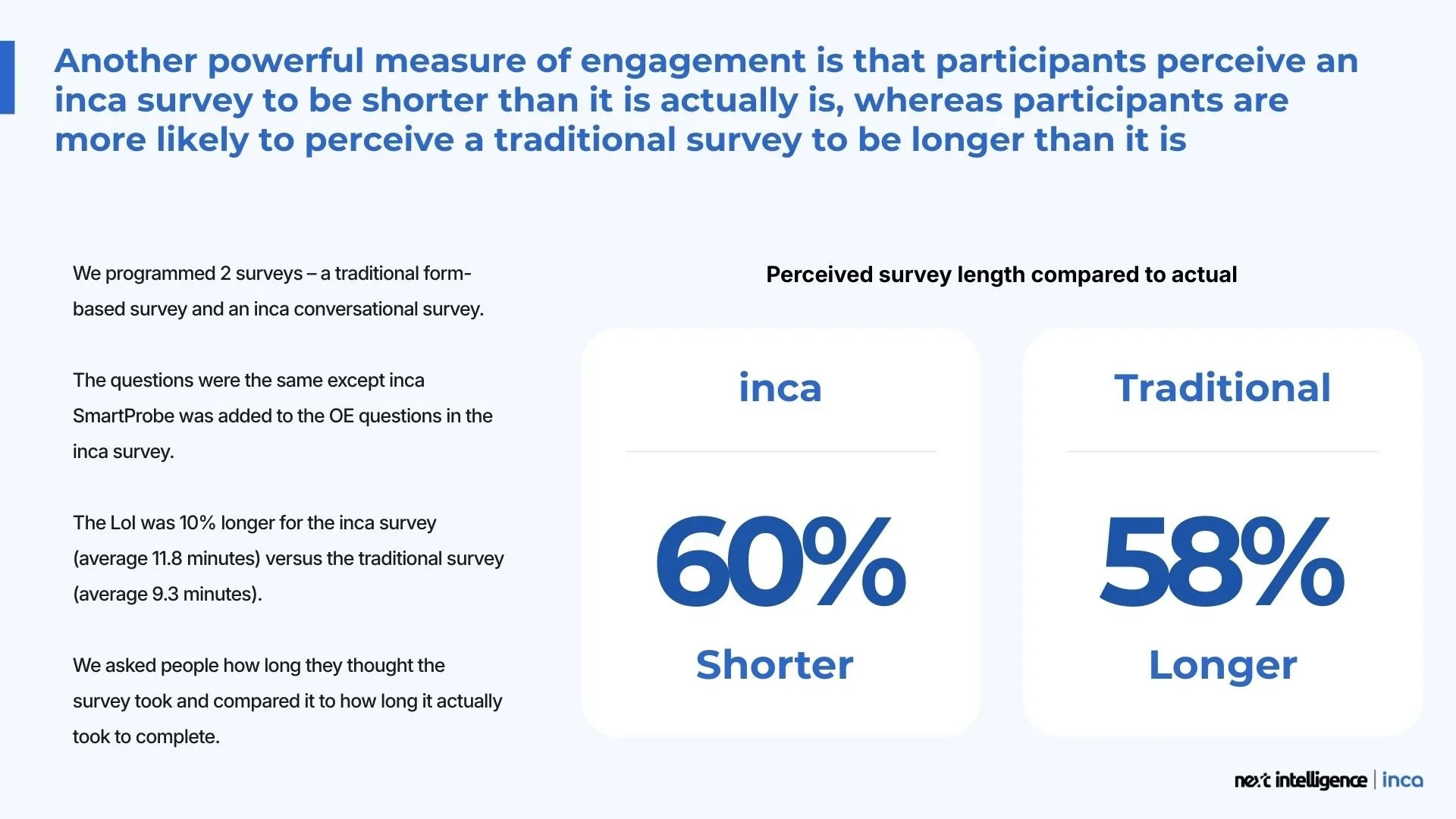 60% of participants using inca perceived the survey to be shorter than it actually was